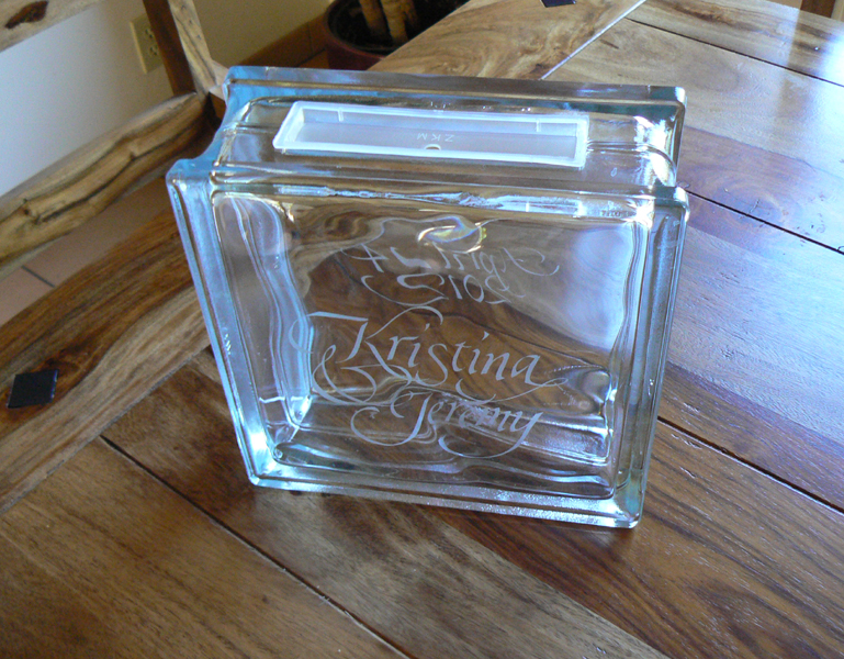 This is really just calligraphy etched in glass. There are many ways to use this technique, including vases, glasses and bowls.